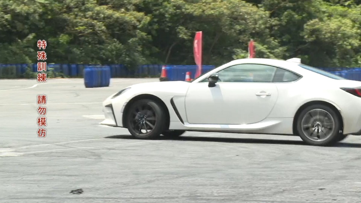 時速飆到80公里立馬360大迴旋,驚險程度不開玩笑。利用手剎車,練習車輛失去抓地力後的鎖死狀況,馬上銜接的動力滑胎,則是加速後使輪胎打滑,再精準控制方向盤壓制失控,完整起來就能達到頭文字D裡的神技飄移。