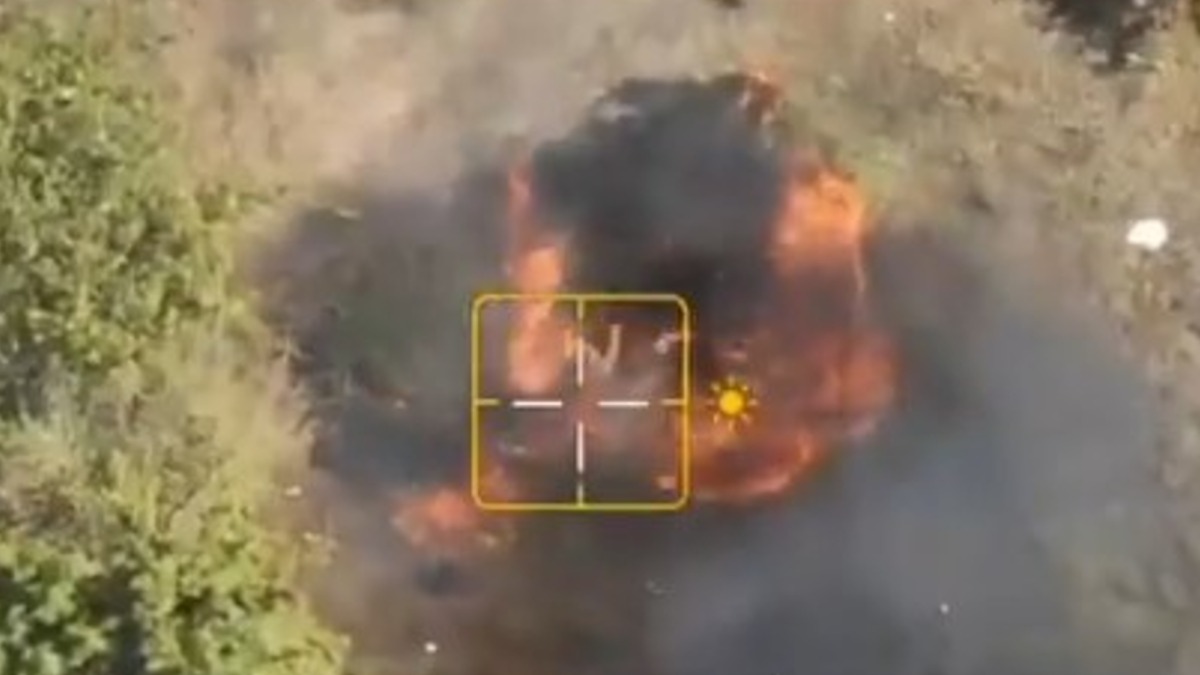 烏軍一架米格29戰鬥機,朝著俄羅斯庫斯克的一處地下指揮中心,投下法國提供的AASM制導炸彈。俄軍的秘密地堡屋頂被精準擊中摧毀,引發巨大火球和濃煙。