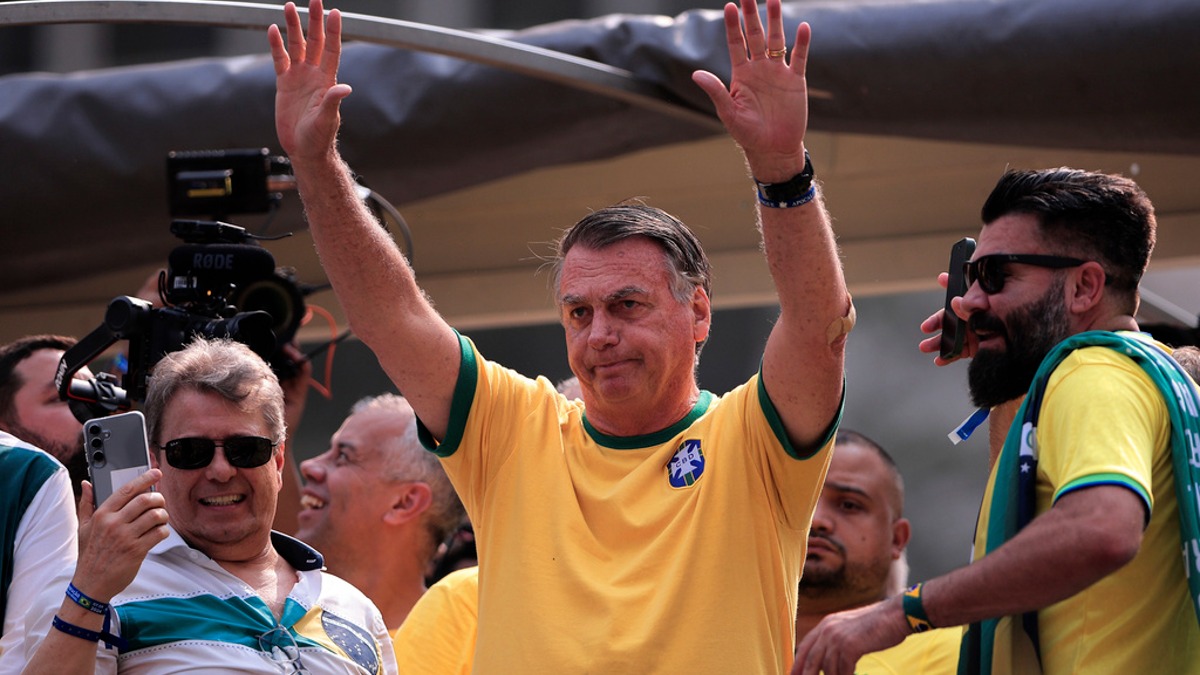 巴西前總統波索納羅親臨抗議現場。(圖/美聯社)