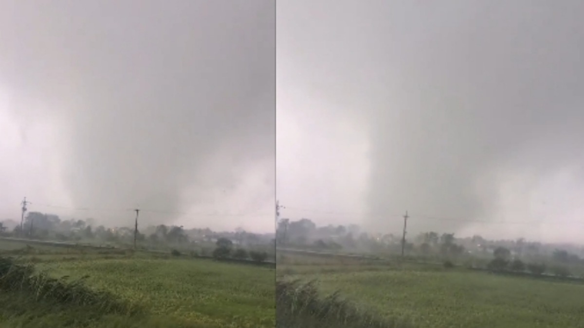 原Po在Threads曬出這段近20秒影片,只見一個漏斗狀的灰黑色圓柱,在陰暗天空和陰鬱草地間盤旋,並隨著風勢不斷移動,宛如不斷變形的巨獸,原Po也驚呼「康芮颱風太跨張」。