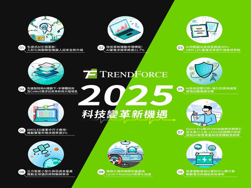 全球市場研究機構TrendForce針對2025年科技產業發展,整理十大重點趨勢。