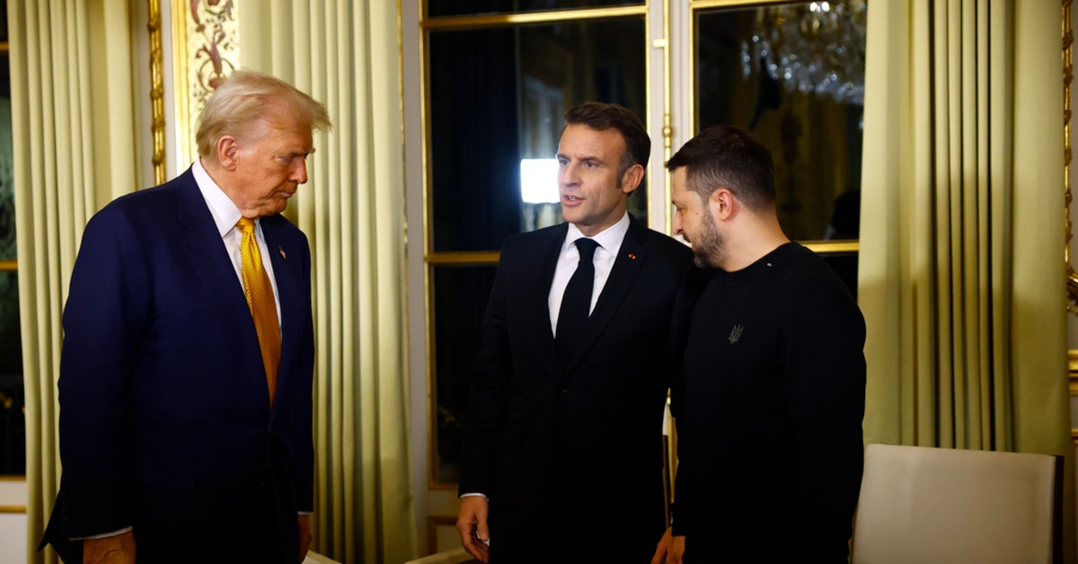 美國總統川普、法國總統馬克宏和烏克蘭總統澤倫斯基。(圖/美聯社)