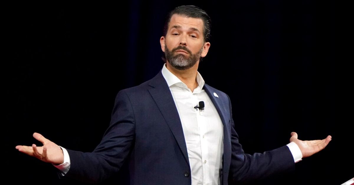 川普長子小唐納在社群平台PO出一張1992年「洛城暴動舊照」搭配「讓屋頂的韓國人再次偉大」文字引起爭議。(圖/美聯社)