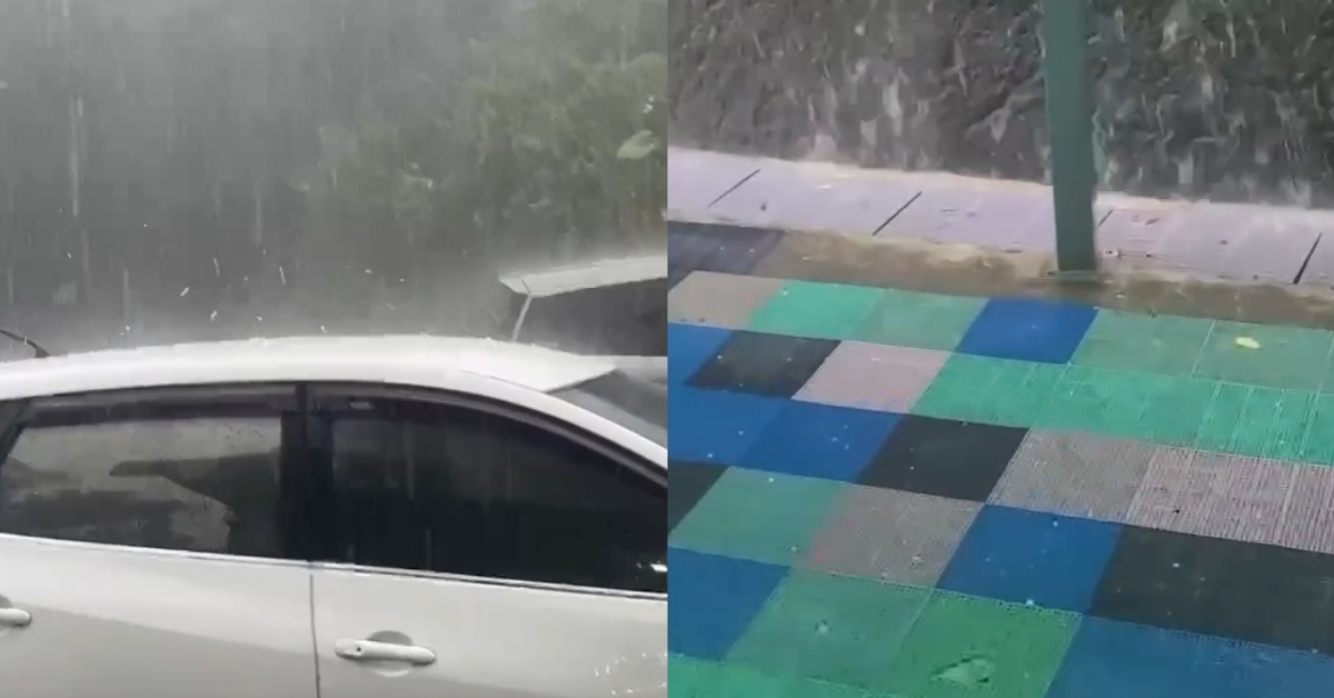 事發在苗栗縣泰安鄉象鼻地區,昨日下午受到對流旺盛影響而下起冰雹,民眾驚奇地拍下影片,可以看到一顆顆米粒大小的冰雹,夾雜著大雨落下,「劈哩啪啦」地落在車頂、地板,再反彈起來,讓居民驚呼連連。