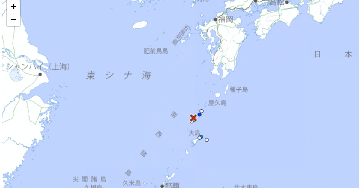 日本鹿兒島縣「吐噶喇列島」近海附近發生規模4.8地震,震源深度20公里,最大震度3級,目前沒有發布海嘯警報。