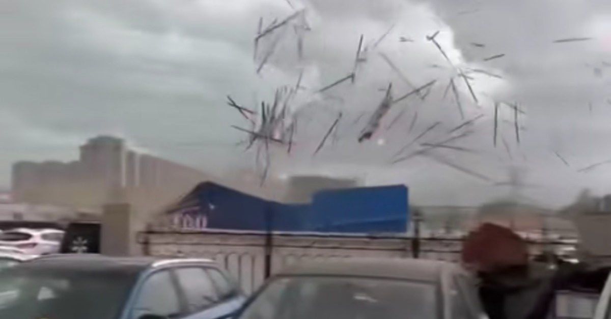 大陸各地近來狂風暴雨不斷,極端天氣造成災害。山東泰安28日下午突然刮起強風,將大型戶外廣告牌吹翻,鐵皮金屬瞬間在空中解體四散,高速亂飛砸到旁邊民宅,和多輛轎車毀損,就連目擊民眾也差點遭波及。