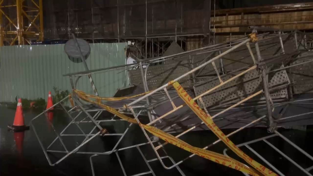 台南市仁德區北保路180巷內有新建案,晚上6點左右,發生鷹架倒塌,無人受傷,目前圍封鎖線,禁止人車靠近。