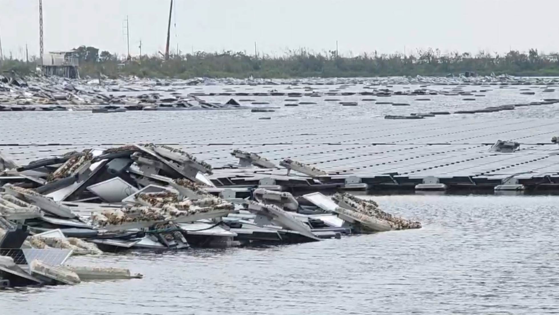 丹娜絲颱風過境,加上低壓帶、西南風影響,狂風暴雨造成嚴重災情。不只造成屏東佳冬鄉外海太陽光電系統浮台「打水漂」,成海廢漂流超過1公里,嘉義新塭太陽能板同樣受損嚴重。空拍畫面拍下光電板的殘骸漂浮在水面,滯洪池淪為垃圾場,慘烈畫面震撼各界。