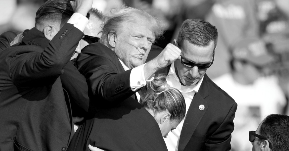 台灣時間2024年7月14日凌晨6點多,美國總統川普在造勢活動中遭到槍擊。(圖/美聯社)