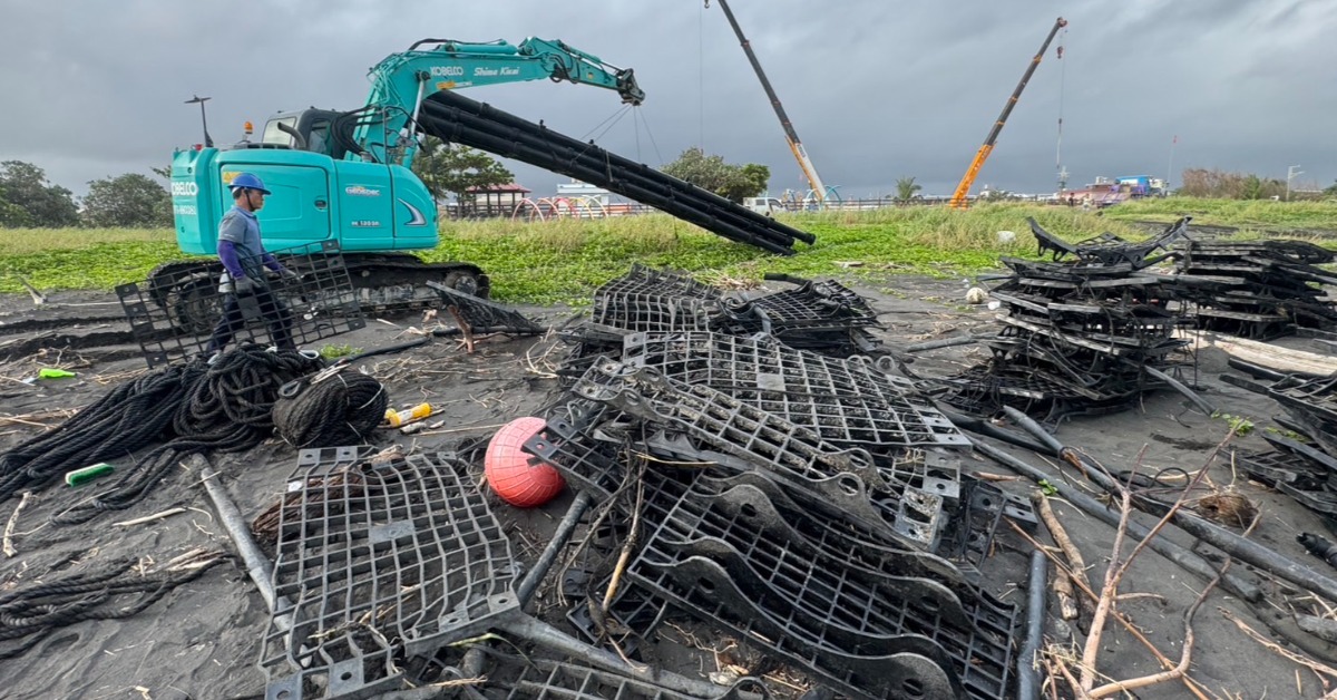 謝金河發文痛批藍白藉機抹黑產業,將災害政治操作為弊案,圖為此次遭摧毀的佳冬海上的離岸光電實驗場。翻攝畫面