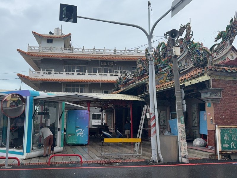 工研院移動式光儲系統「E-CUBE」,第一時間協助臺南風災斷電地區民眾緊急用電,圖中「E-CUBE」位於臺南市北門區永隆宮。(工研院提供)