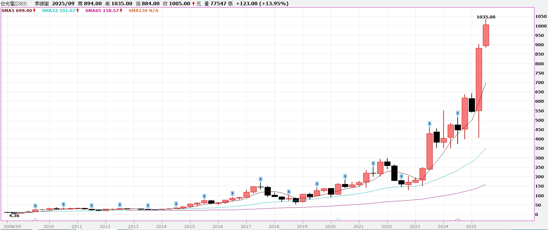 隨著AI熱潮爆發,多家台股上市櫃公司也因此受惠,股價自谷底翻身,台股更出現多達20多家的千金股,財信傳媒董事長謝金河直言「這是很難以想像的事!」他更讚許台光電(2383)讓同業都看不到他的車尾燈,是一個傳奇!