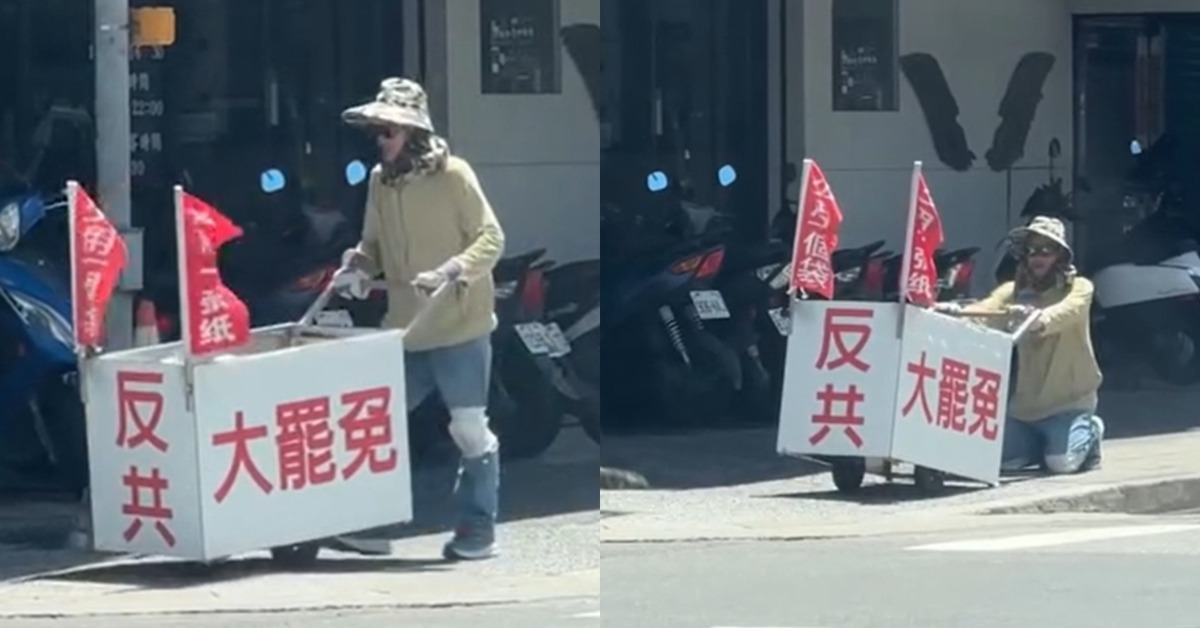 距離大罷免投票日僅剩兩天,不少藝人與網紅紛紛公開表態,民間也出現許多自發性的聲援行動。一名網友昨(23)日在社群平台分享一段影片,只見一名男子推著印有「反共大罷免」字樣的宣傳車,從屏東一路徒步跪拜北上,舉動引發網友們熱議。