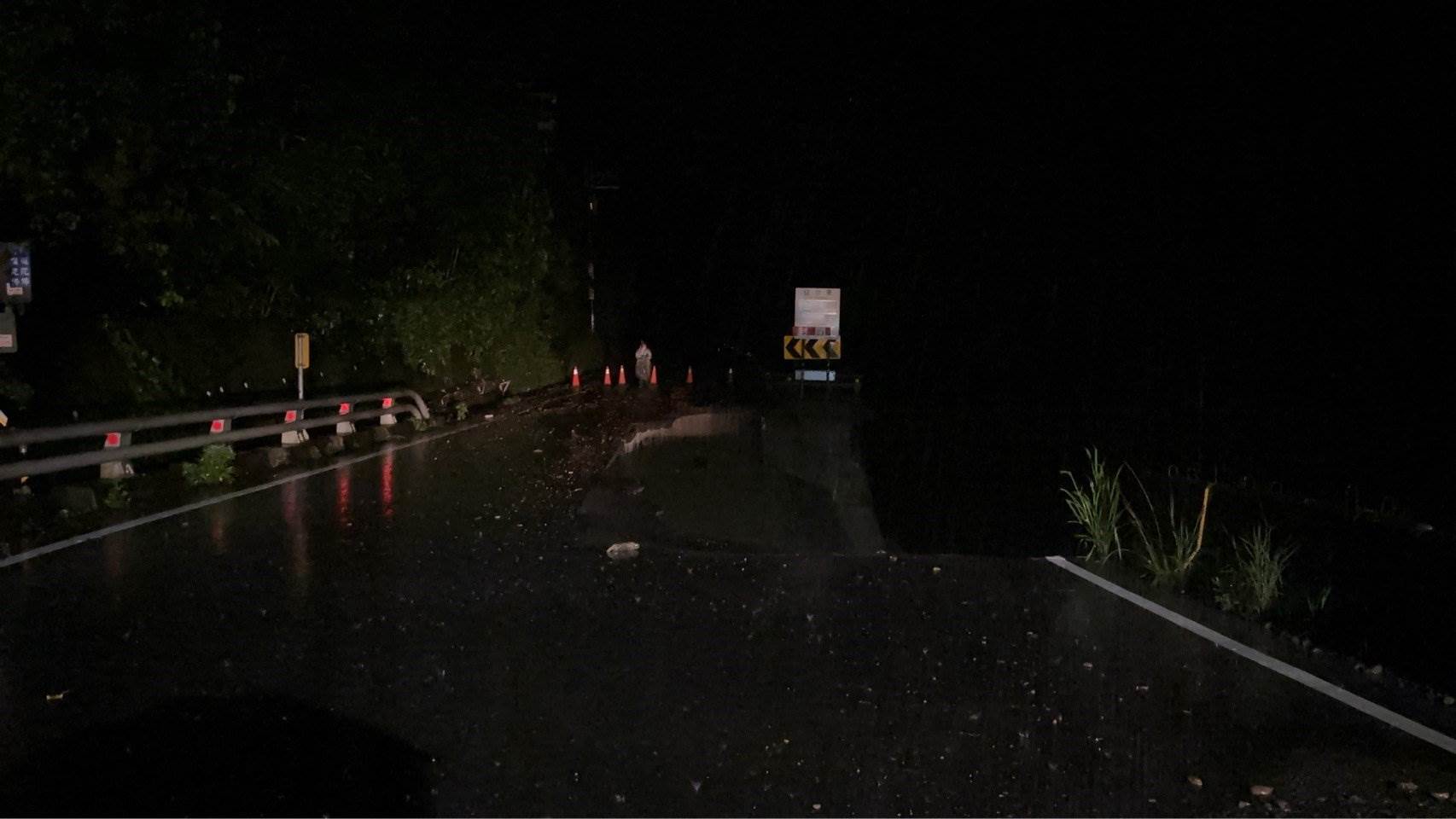 台20線79k(樂樂路段)路基流失,上午2點30分道路緊急封閉。(圖/翻攝自公路局)