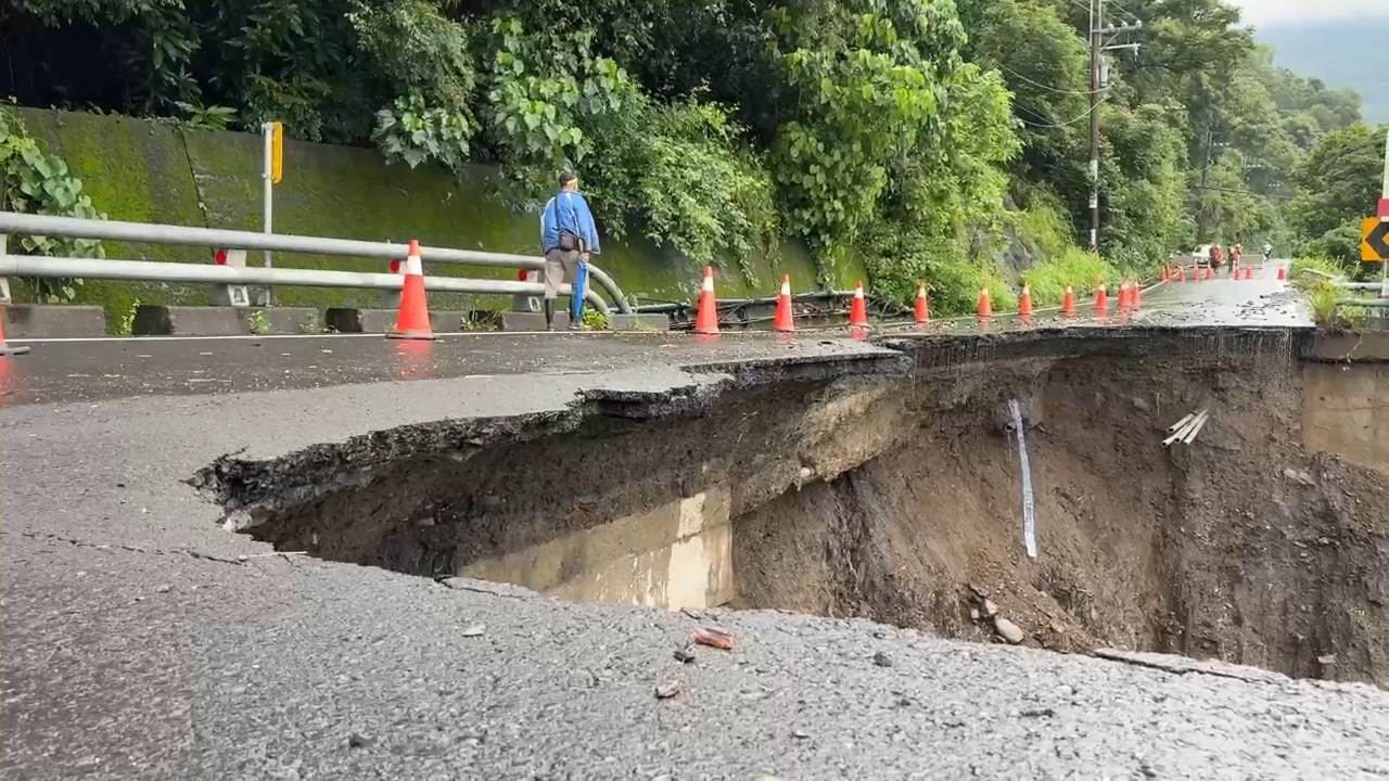 南橫寶來二號橋因暴雨路面坍塌。(圖/東森新聞)