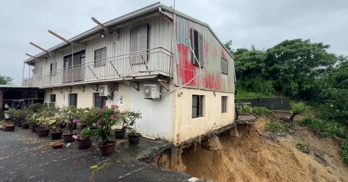 台南柳營麻埔地區一處民宅昨天晚間九點多,地基突然崩滑到十層樓深的山腳下。(圖/東森新聞)