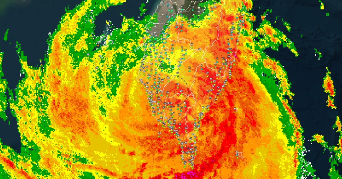 楊柳颱風已經從台東太麻里登陸,也造成台東及綠島、蘭嶼不少災情,氣象粉專指出,楊柳颱風即將進入南部平原,而颱風中心似乎正在台南上空,不少網友直呼「外面突然變安靜,感覺毛毛的。」
