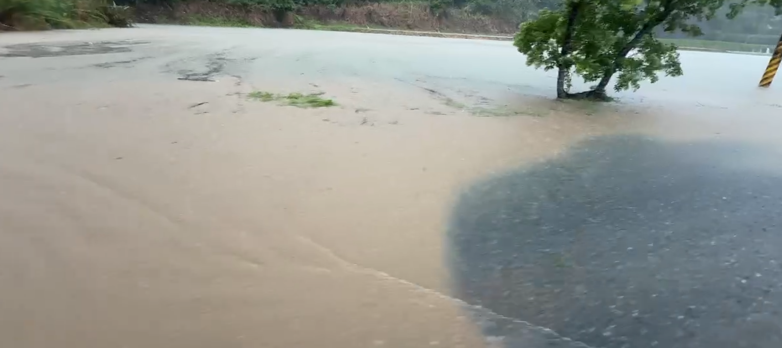花蓮玉里的東豐社區,出現馬路變小河的情況,路上一片黃流。