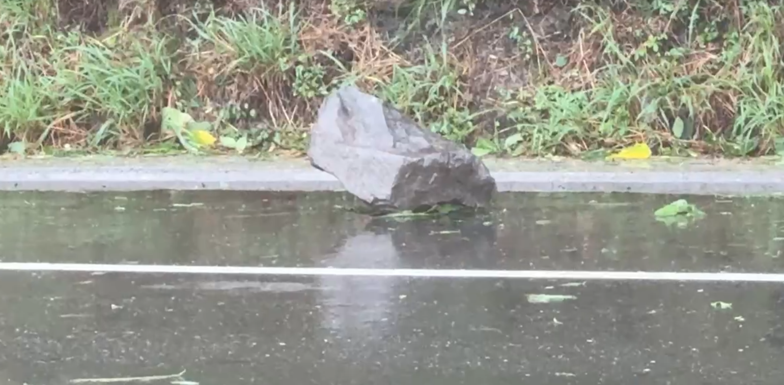台東地區出現多處災情,大武出現落石、市區出現路樹連根拔起、外牆磚塊掉落等情形。