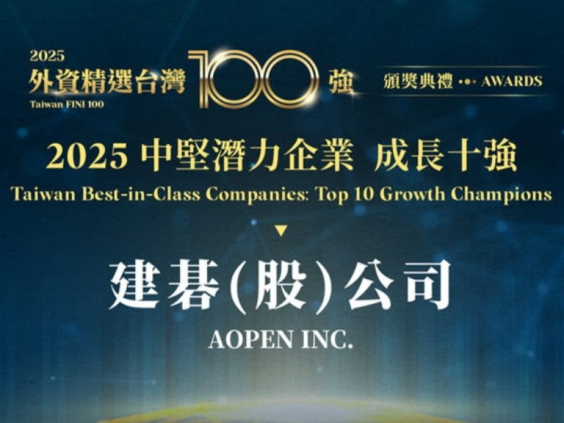建碁公司在台灣董事學會「2025 外資精選百強」評選中,以財務表現及永續治理等方面,獲得「中堅潛力企業」與「中堅潛力企業成長十強」兩​項殊榮。肯​定建碁在全​球佈局與I​PC產業應​用領域,結​合其創新研​發的智慧解​決方案,展​現穩健國際​競爭力與積​極成長動能​的企業價值​。