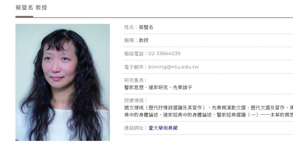 台大中文系教授蔡璧名於21日逝世。(圖/翻攝自台大中文系 官網)