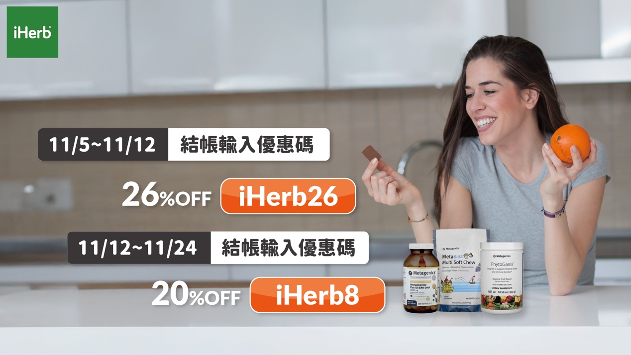 結帳輸入優惠碼【iHerb26】即可享全單74折優惠